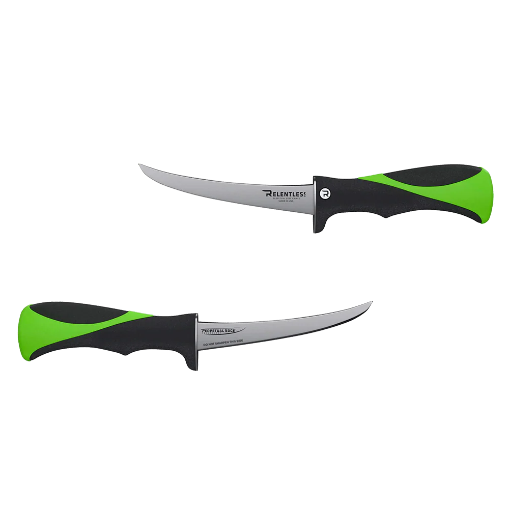 Compact, sharp, and built for control and precise work the Relentless 6-Inch Curved Fillet Knife is perfect for precision work on smallerfish liketrout, snapper, or crappie. The curved blade excels at tight cuts and detail work—making it just as effective at cutting bait as it is at breaking down game like deer or elk in the field. Proudly made in the USA and paired with a premium leather sheath, this knife is a versatile, all-purpose tool that belongs in every serious angler’s or hunter’s kit.